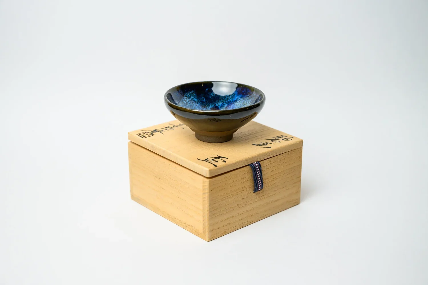 Each of his works captures the ethereal interplay of light and color, reminiscent of a starry night sky, with iridescent blues, purples, and shimmering speckles emerging through meticulous firing techniques. His unparalleled craftsmanship and artistic vision have earned him recognition among collectors and tea ceremony enthusiasts alike.